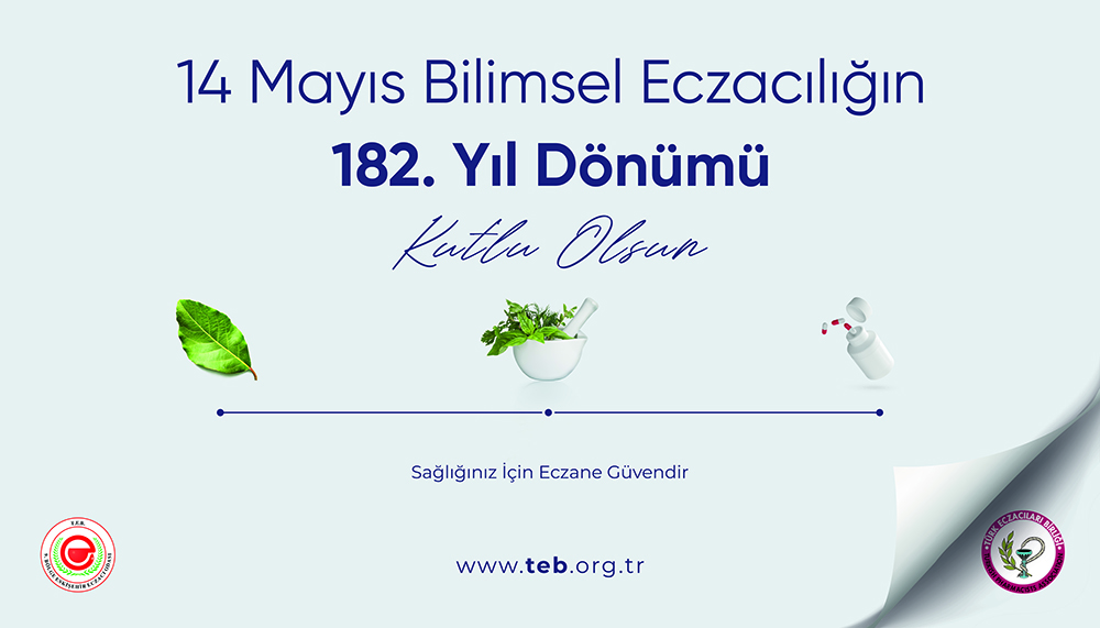 Eczacılık mesleğinin akademik kuruluşunun 182. yıl dönümünde yaşadığımız tüm sorunlara ve olumsuzluklara karşın; ülkemizin dört bir yanında halkımıza özveriyle sağlık hizmeti sunmanın haklı gururunu yaşayan tüm meslektaşlarımızın “14 Mayıs Eczacılık Günü”nü en içten dileklerimizle kutluyor, bilimin ve doğruların ışığında güzel günler göreceğimize olan inancımızla, sağlık dolu nice aydınlık yıllar diliyoruz.
