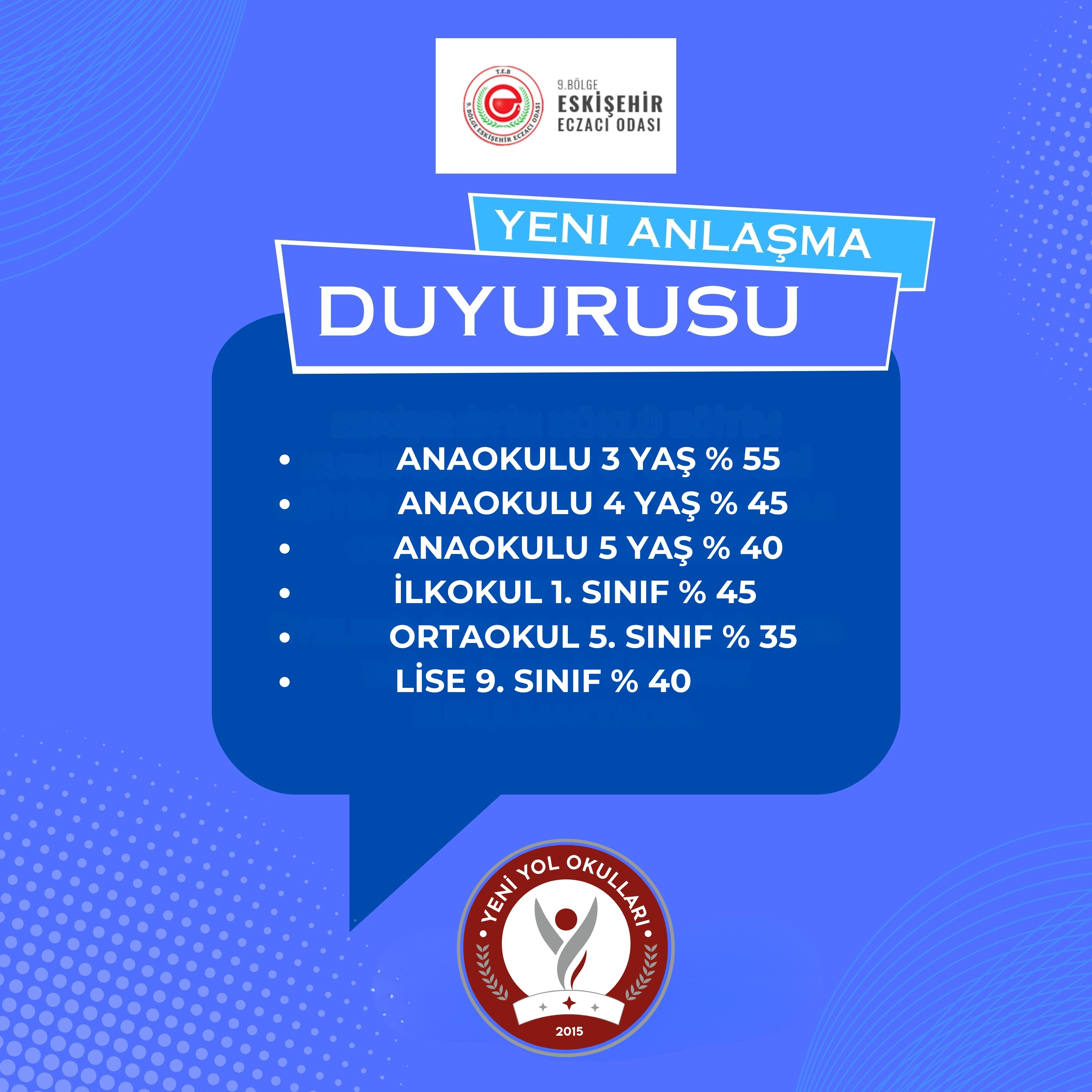 Odamız ve Yeniyol Okulları arasında yapılan protokolle odamız üyelerine indirim imkanı sağlanmıştır.