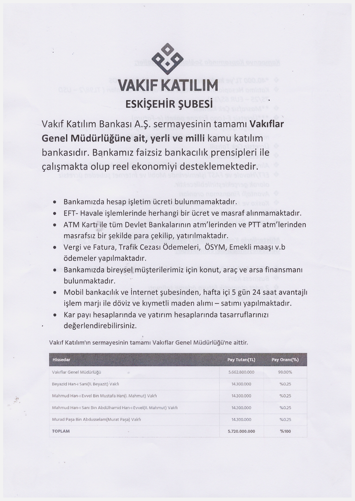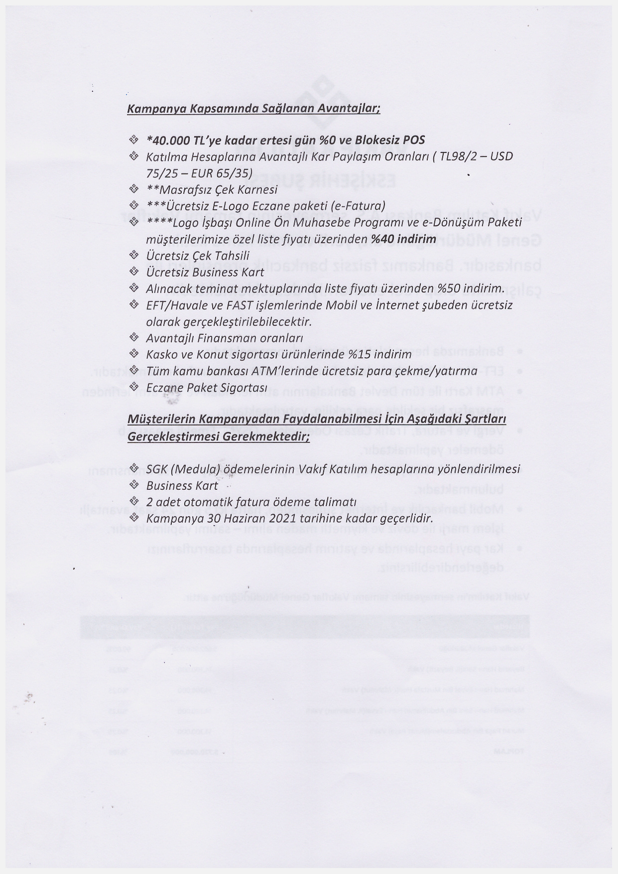 Vakıf Katılımın Kampanya Kapsamında Sağlanan Avantajlarla İlgili Yazı Hak